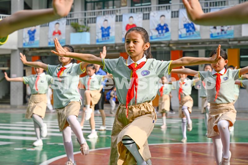 图片说明:2025年4月11日,在安徽省合肥市庐阳区双岗街道虹桥小学,小学生正在大课间练习武术操。