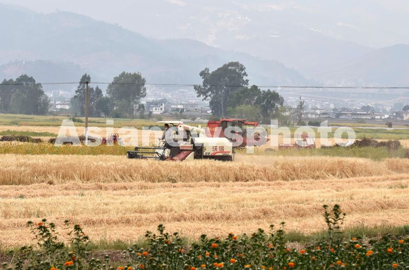 云南巍山:抢收大麦颗粒归仓 查看组图