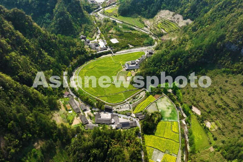 图片说明:2025年4月10日,重庆市黔江区小南海镇新建村土家十三寨的油菜花田与民居相间,美不胜收。