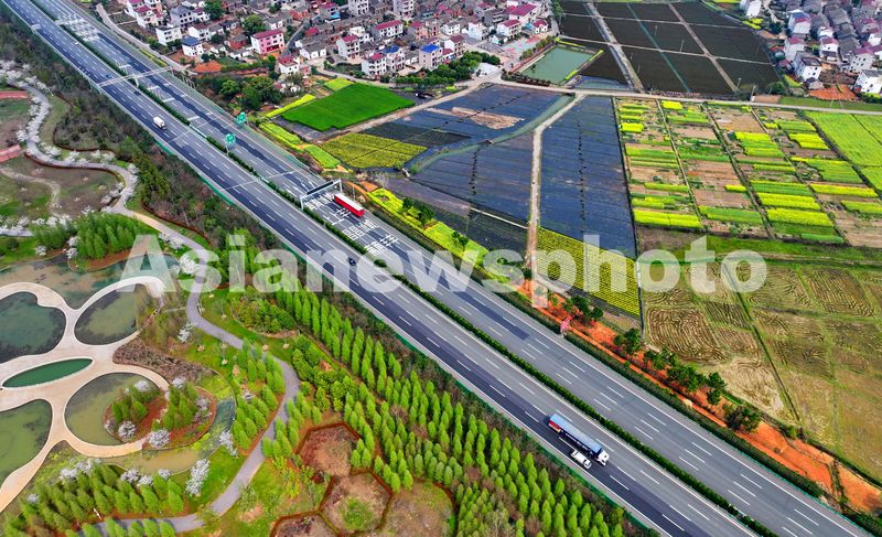 图片说明:2025年4月13日,江西省宜春市丰城市,沪昆高速梅林镇路段,物流货运车辆往来疾驰。