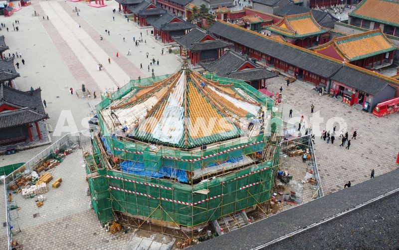沈阳故宫大政殿等部分建筑进行维护保养 查看组图