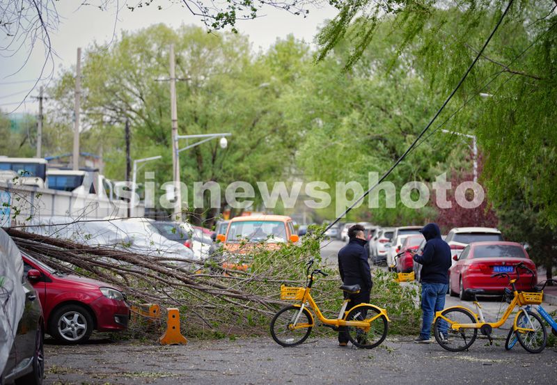 图片说明:4月12日,姚家园南路附近,树枝被风刮断。