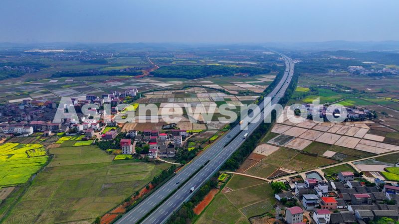 图片说明:2025年4月13日,江西省宜春市丰城市,沪昆高速梅林镇路段,物流货运车辆往来疾驰。