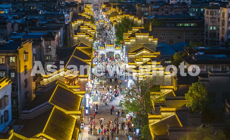 2025年4月14日,湖北省襄阳市,襄阳古城夜色绚烂,吸引游客纷至沓来。