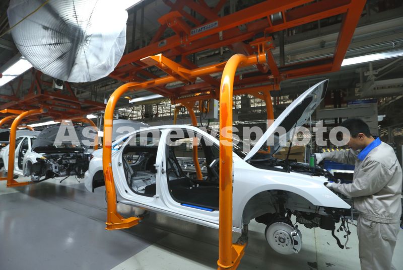 图片说明:2025年4月15日,在位于青岛市即墨区的一汽-大众青岛基地总装车间,工人在组装汽车。