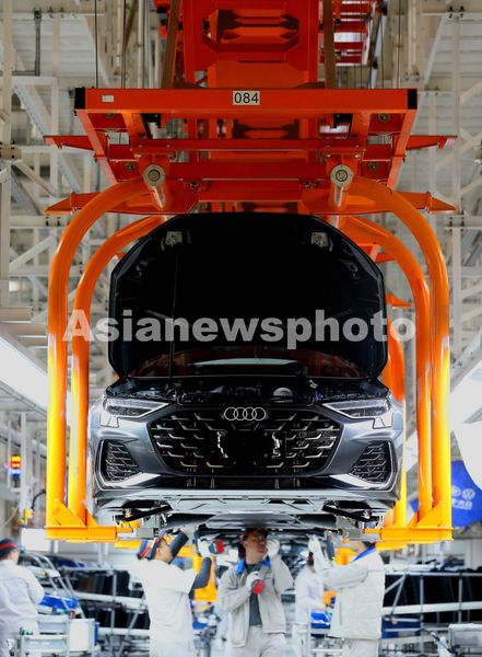 图片说明:2025年4月15日,在位于青岛市即墨区的一汽-大众青岛基地总装车间,工人在组装汽车。