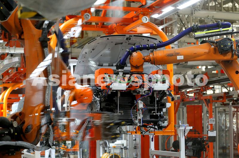 图片说明:2025年4月15日,在位于青岛市即墨区的一汽-大众青岛基地总装车间,智能化生产线在进行生产作业。