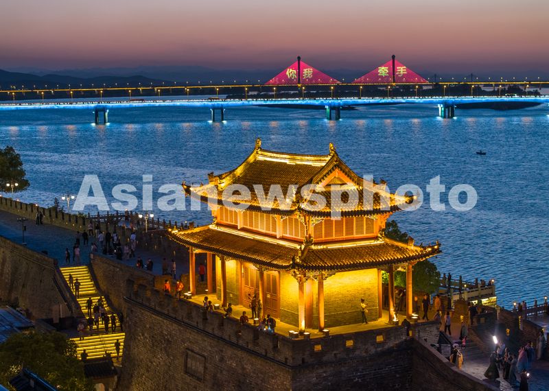 2025年4月14日,湖北省襄阳市,襄阳古城夜色绚烂,吸引游客纷至沓来。