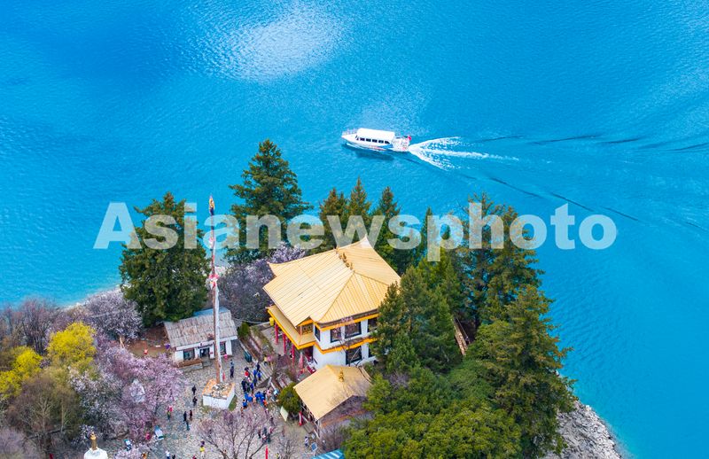 图片说明:2025年4月16日,西藏自治区林芝市巴松措湖心岛美景如画。
