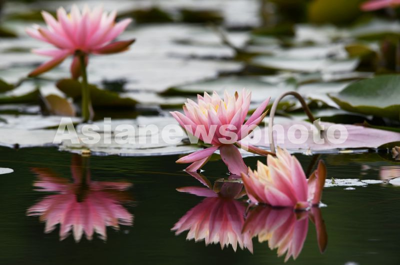 2025年4月17日,在杭州西湖景区拍摄到的盛开的睡莲。