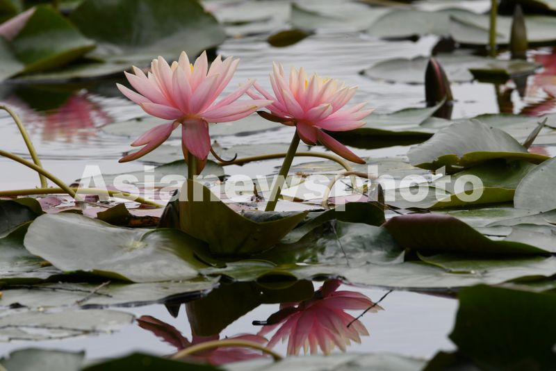 2025年4月17日,在杭州西湖景区拍摄到的盛开的睡莲。