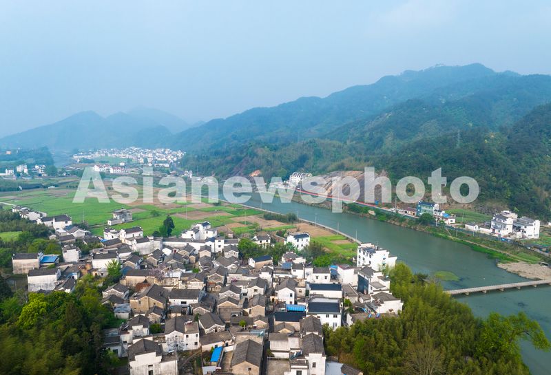 图片说明:2025年4月20日,安徽省宣城市绩溪县瀛洲镇,粉墙黛瓦的古村落与碧水青山相映成景,美不收胜。