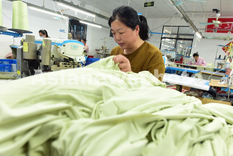 图片说明:2025年4月21日,江苏省连云港市东海县洪庄镇玉荣服饰有限公司正在赶制外贸出口订单防晒服。