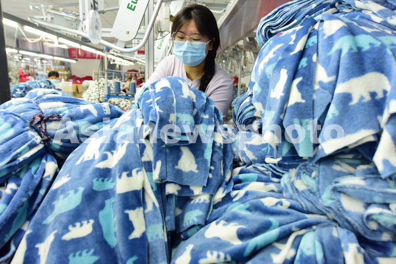 图片说明:2025年4月21日,江苏省连云港市东海县洪庄镇铭汇服饰有限公司正在赶制外贸出口订单毛绒睡衣。