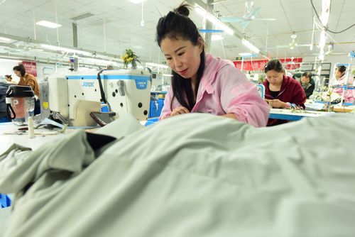 江苏东海:“服装小镇”订单生产忙 查看组图