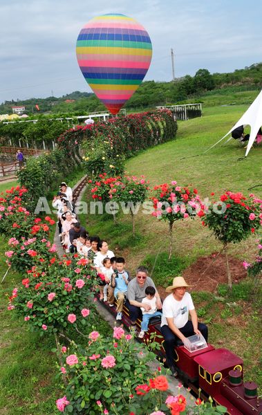 图片说明:2025年4月20日,湖南省衡阳市珠晖区茶山坳镇,游客在金甲玫瑰花园里游玩。