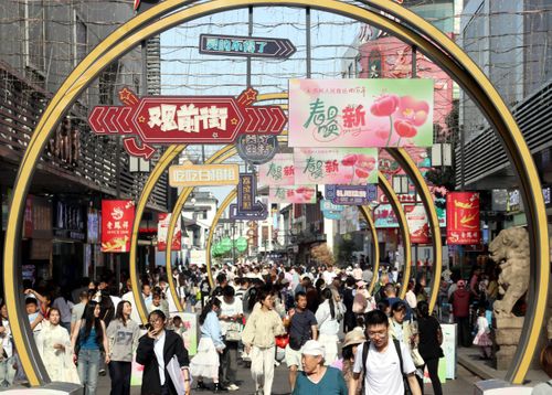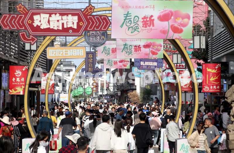 图片说明:2025年4月20日,江苏省苏州市观前街人潮涌动。