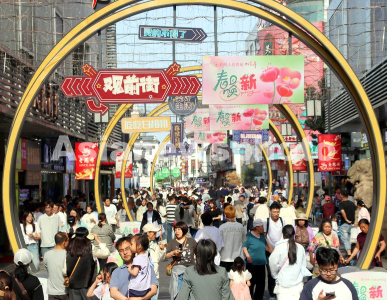 图片说明:2025年4月20日,江苏省苏州市观前街人潮涌动。