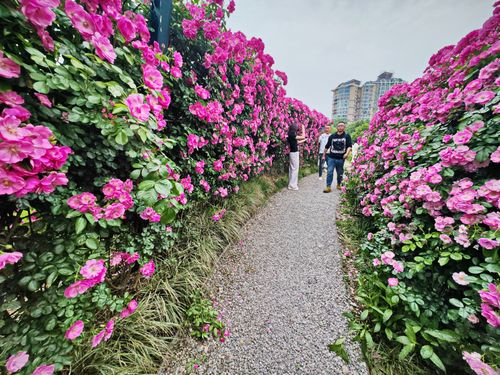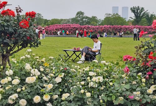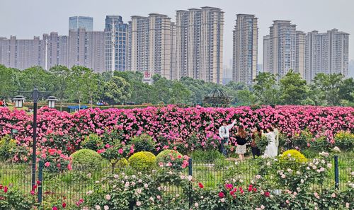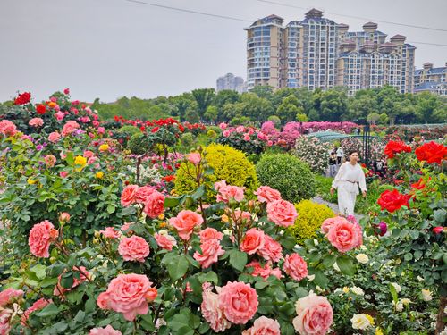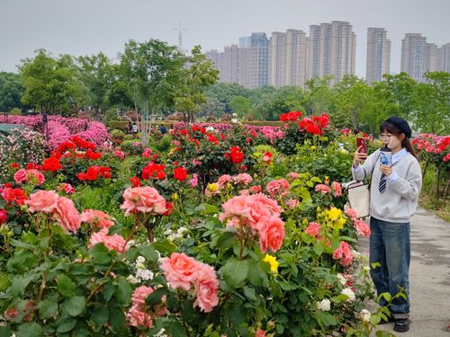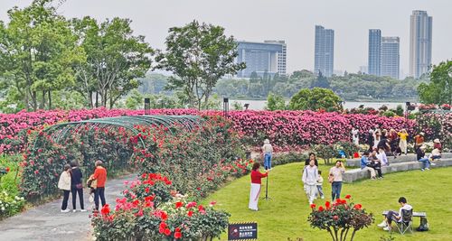 湖北武汉:金银湖畔月季花园花盛人气旺 查看组图