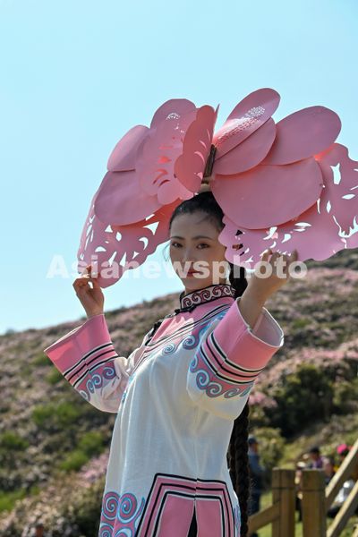 贵州盘州:杜鹃花海映霓裳,云端上的乌蒙村秀精彩纷呈 查看组图