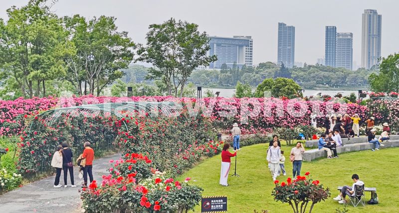 湖北武汉:金银湖畔月季花园花盛人气旺 查看组图
