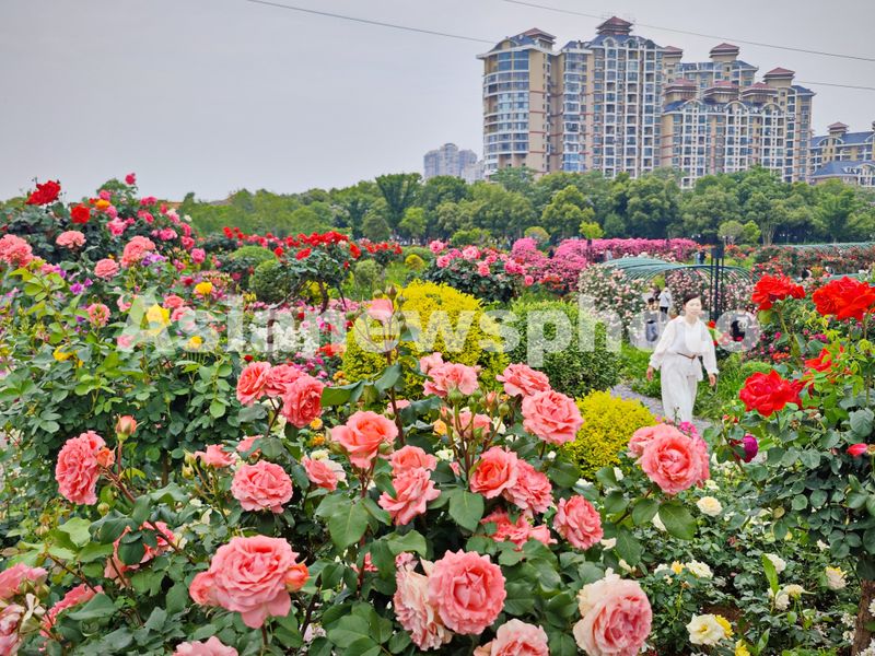 湖北武汉:金银湖畔月季花园花盛人气旺 查看组图