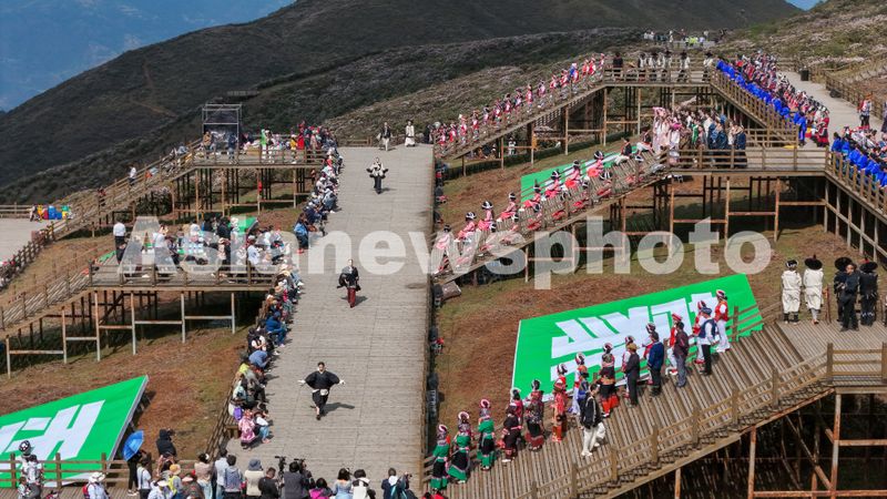 图片说明:2025年4月20日,贵州省六盘水市盘州市乌蒙大草原景区,模特在“乌蒙村秀”活动中走秀。