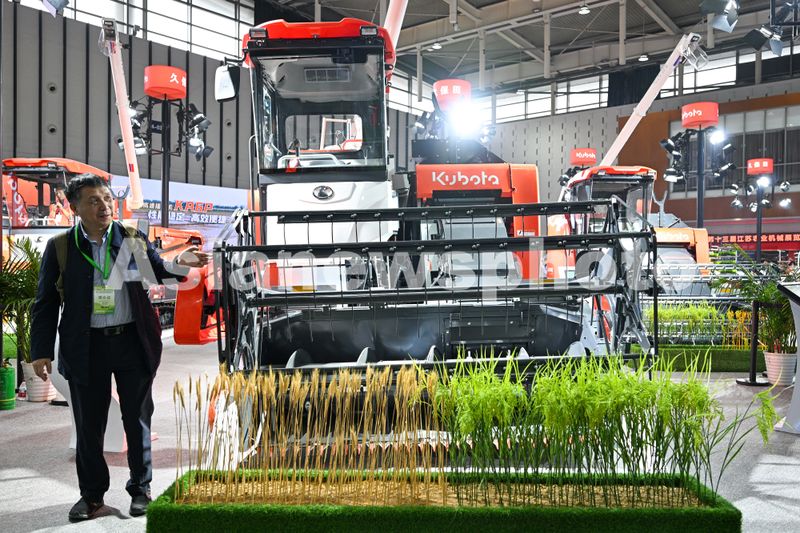 2025年4月24日,江苏省南京国际博览中心,观众在第十三届江苏农业机械展览会上参观农机。