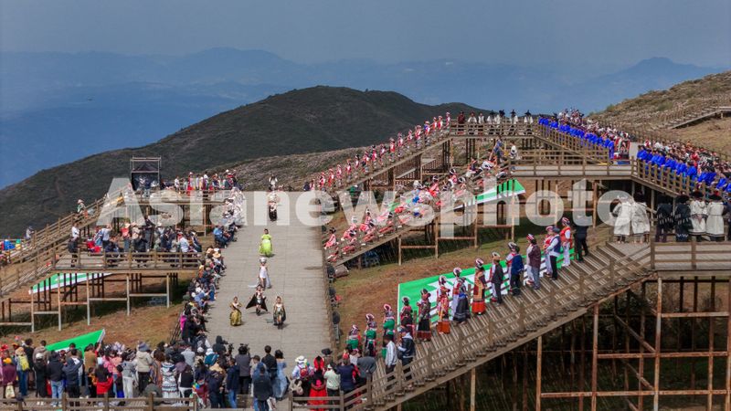 图片说明:2025年4月20日,贵州省六盘水市盘州市乌蒙大草原景区“乌蒙村秀”在竞相绽放的高山矮杜鹃花海中精彩上演。