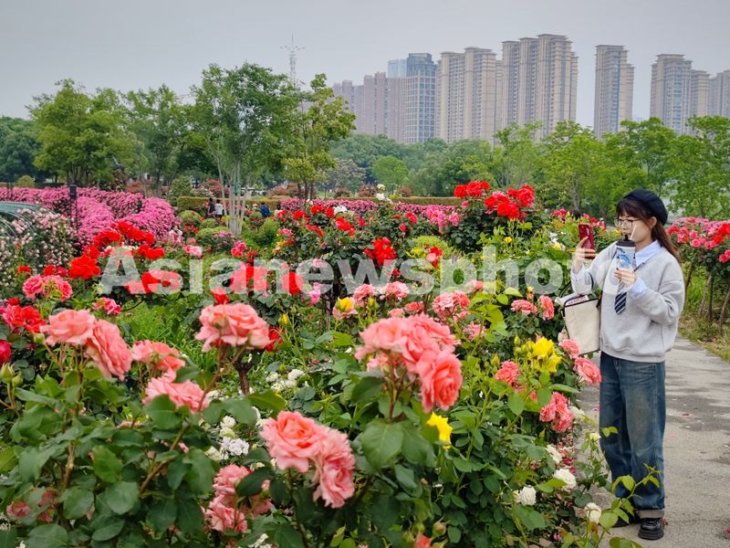 图片说明:4月22日,湖北省武汉市东西湖区国家城市湿地公园的金银湖公园月季花园,形成一道道花墙和一片片花海,吸引了众多市民、游客前来赏玩打卡。