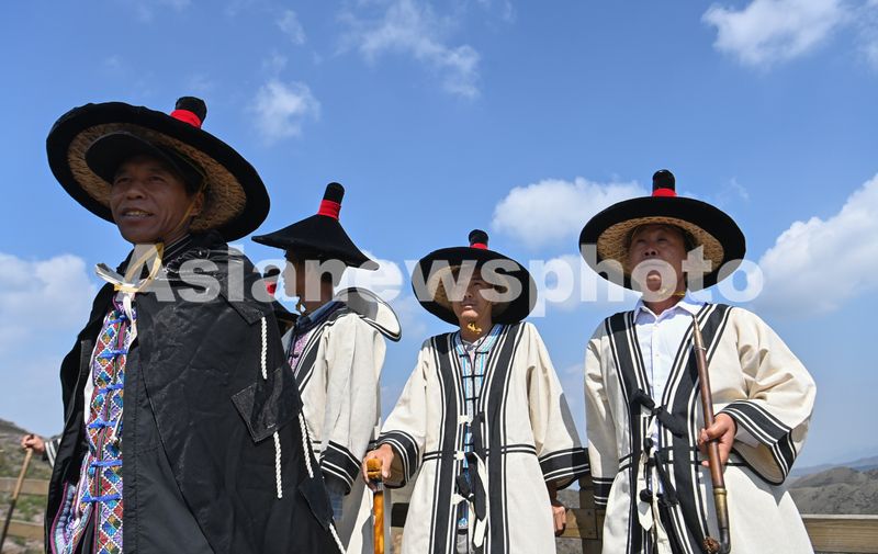 图片说明:2025年4月20日,贵州省六盘水市盘州市乌蒙大草原景区,彝族群众在“乌蒙村秀”活动中走秀。
