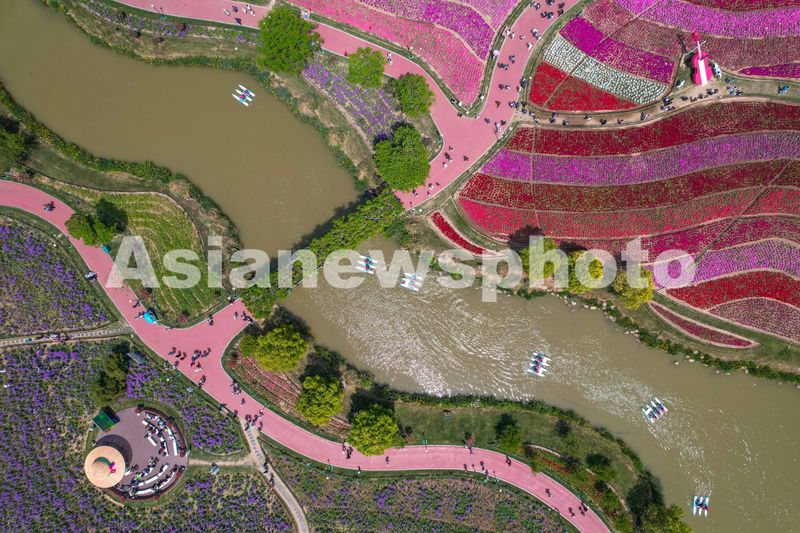 2025年5月3日,江苏省盐城市大丰区的荷兰花海景区百花争艳,五彩缤纷,成片的花海吸引众多游客前来赏花游玩,乐享假期休闲时光。