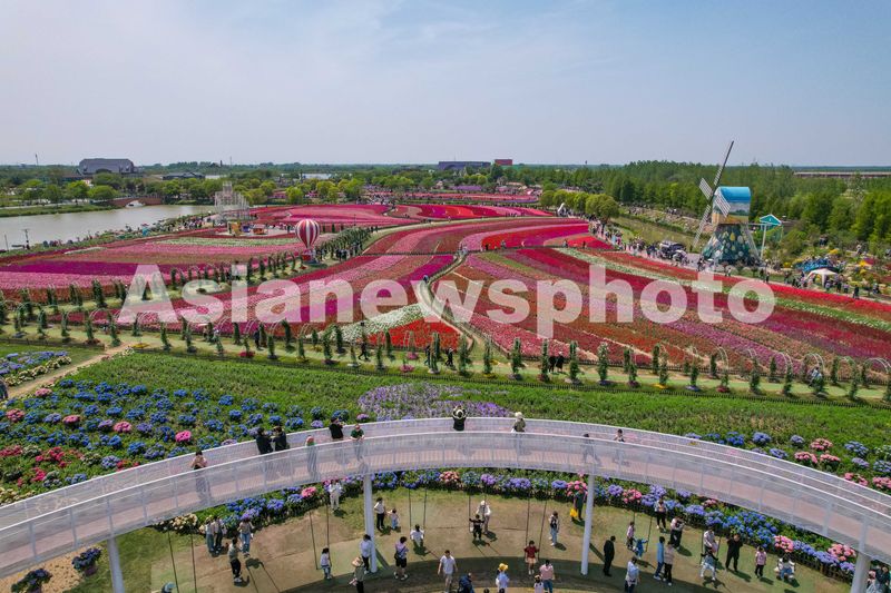 2025年5月3日,江苏省盐城市大丰区的荷兰花海景区百花争艳,五彩缤纷,成片的花海吸引众多游客前来赏花游玩,乐享假期休闲时光。