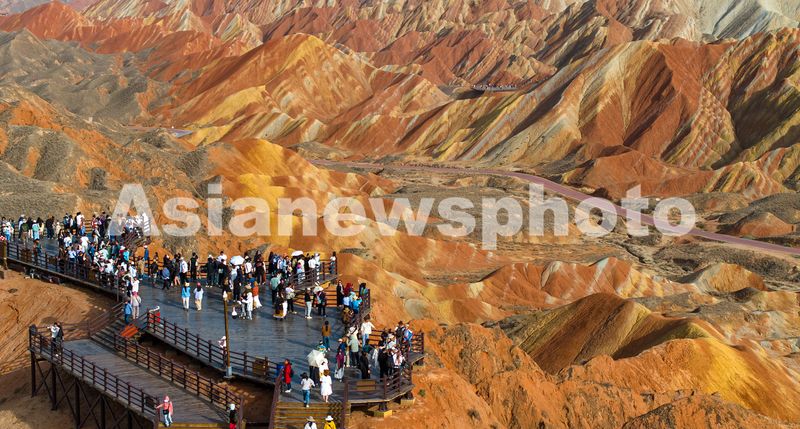 2025年5月3日,甘肃张掖七彩丹霞景区游人如织,全国各地的游客纷至沓来,欣赏绚丽的丹霞景观,领略祖国壮美山河。