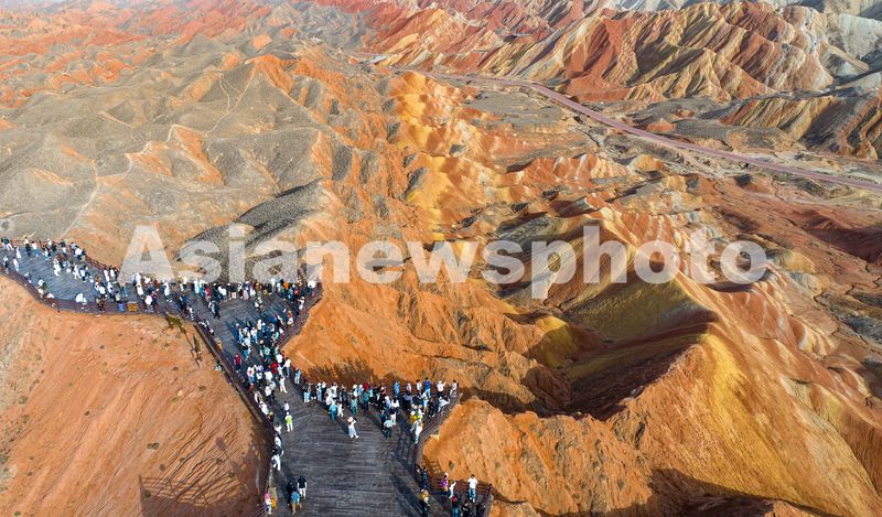 2025年5月3日,甘肃张掖七彩丹霞景区游人如织,全国各地的游客纷至沓来,欣赏绚丽的丹霞景观,领略祖国壮美山河。