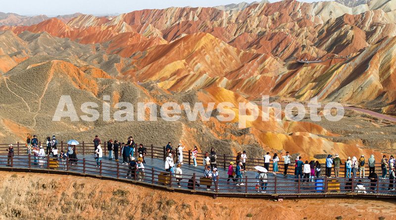 2025年5月3日,甘肃张掖七彩丹霞景区游人如织,全国各地的游客纷至沓来,欣赏绚丽的丹霞景观,领略祖国壮美山河。