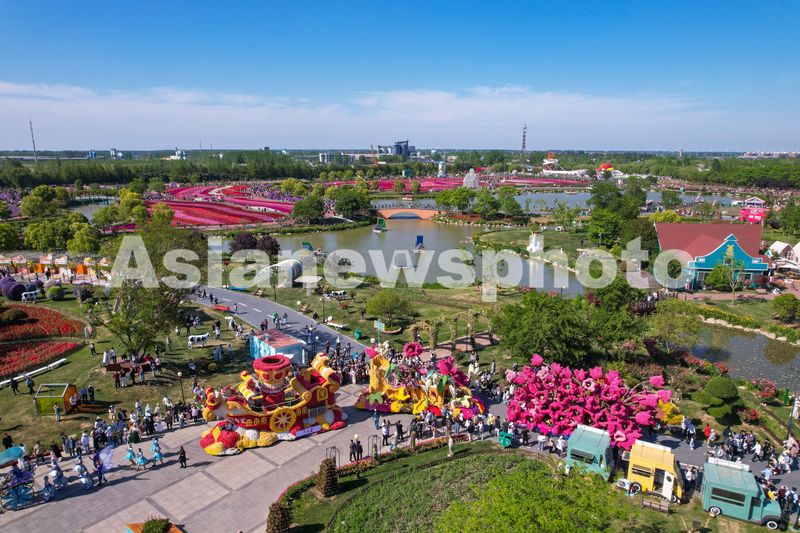 2025年5月3日,江苏省盐城市大丰区的荷兰花海景区百花争艳,五彩缤纷,成片的花海吸引众多游客前来赏花游玩,乐享假期休闲时光。