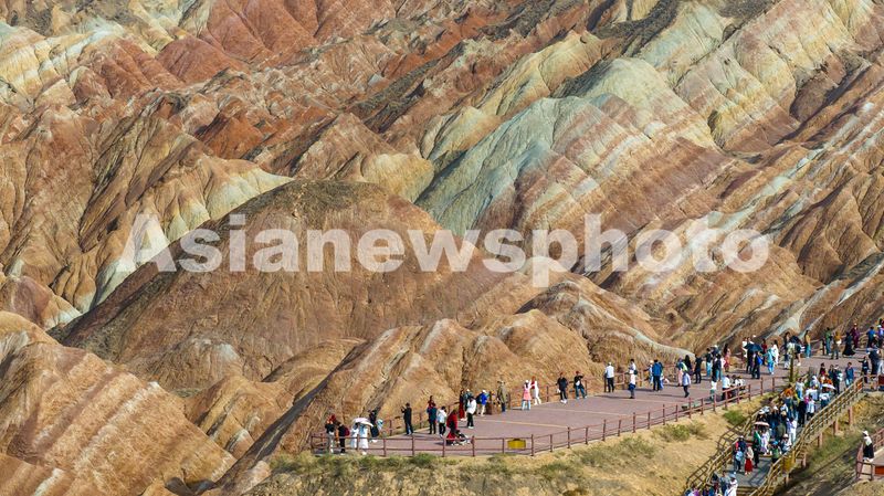 2025年5月3日,甘肃张掖七彩丹霞景区游人如织,全国各地的游客纷至沓来,欣赏绚丽的丹霞景观,领略祖国壮美山河。