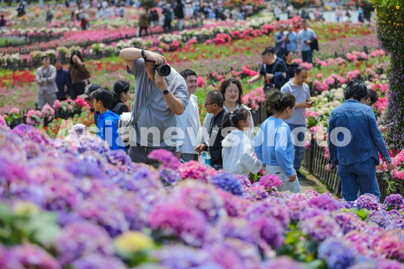 2025年5月3日,江苏省盐城市大丰区的荷兰花海景区百花争艳,五彩缤纷,成片的花海吸引众多游客前来赏花游玩,乐享假期休闲时光。