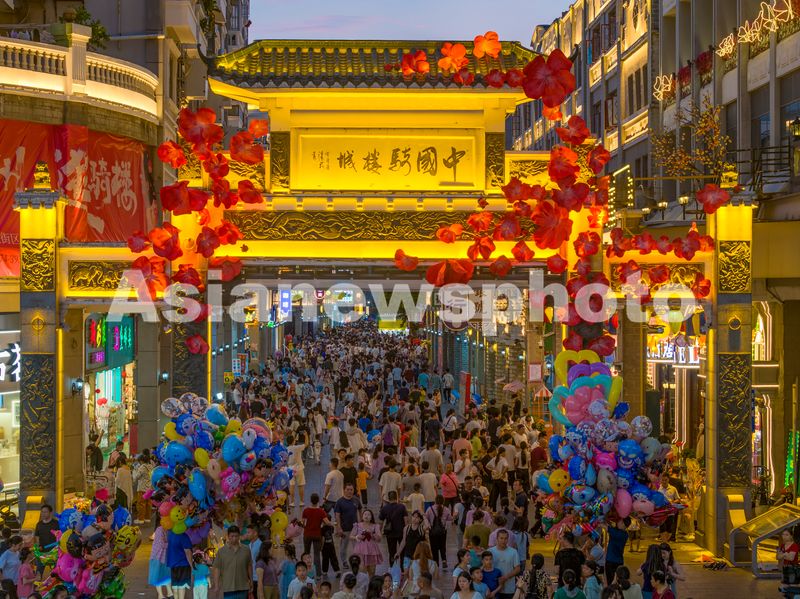 图片说明:2025年5月4日,广西梧州市万秀区,中国骑楼城灯火璀璨,游人如织。