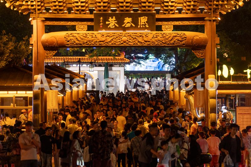 2025年5月4日晚,浙江省金华市婺城区婺州古城景区,游客在非遗市集里休闲度假。