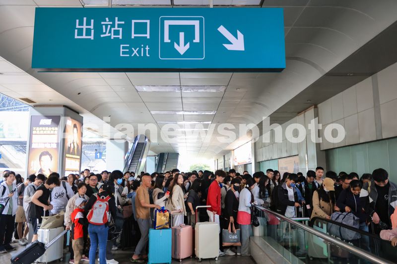 5月5日,旅客在南京火车站下车出站。
