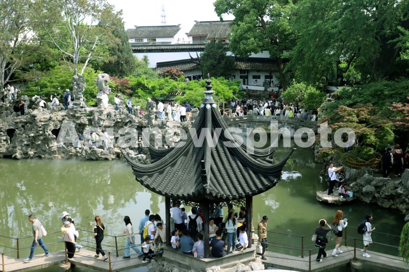 图片说明:2025年5月4日,众多游客在苏州古典园林狮子林游玩。