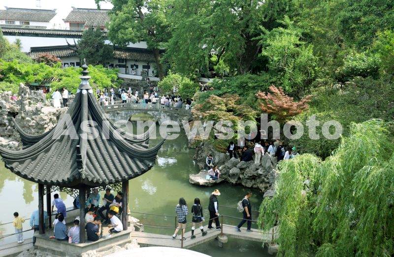图片说明:2025年5月4日,众多游客在苏州古典园林狮子林游玩。