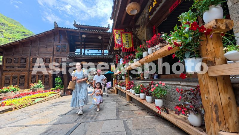 图片说明:5月3日,游客在贵州省黔西南布依族苗族自治州兴义市峰林布依景区游玩。