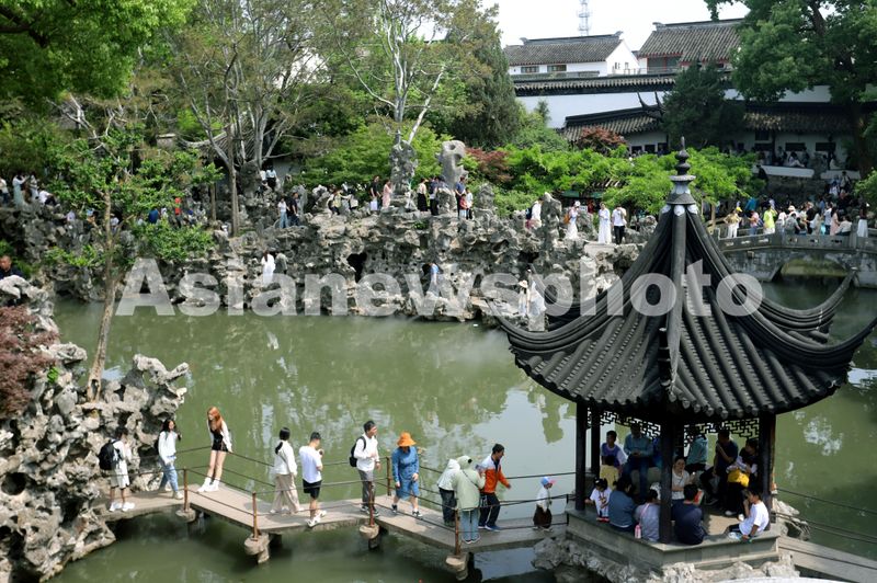 图片说明:2025年5月4日,众多游客在苏州古典园林狮子林游玩。