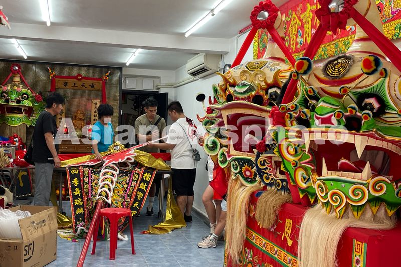 5月3日,香港长洲岛,本地居民为将于5月5日举行的“长洲太平清醮”活动做准备。“长洲太平清醮”于2011年列入第三批国家级非遗代表性项目名录,又称“包山节”,其“醮”即祭祀活动,相传清朝中叶长洲瘟疫为患,居民向北帝神祈福,请高僧设坛拜祭,并奉北帝神像游行,疫症才消除。