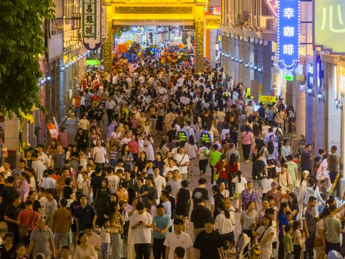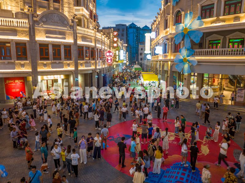 图片说明:2025年5月4日,广西梧州市万秀区,中国骑楼城灯火璀璨,游人如织。
