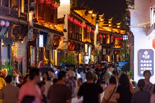 “五一”假期里,浙江省金华市婺州古城景区开启“夜游”模式。每到夜晚,婺州古城景区里非遗市集、婺剧大戏、古城演艺、文庙国风雅集等活动精彩纷呈,吸引游客纷至沓来,感受古韵文化。活动通过文旅深度融合,打造沉浸式消费新场景,进一步释放了假日经济活力。