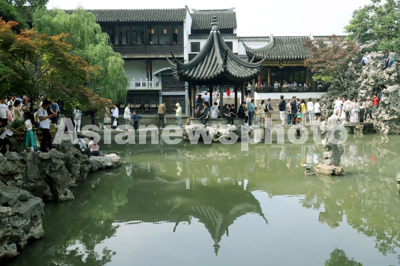 图片说明:2025年5月4日,众多游客在苏州古典园林狮子林游玩。